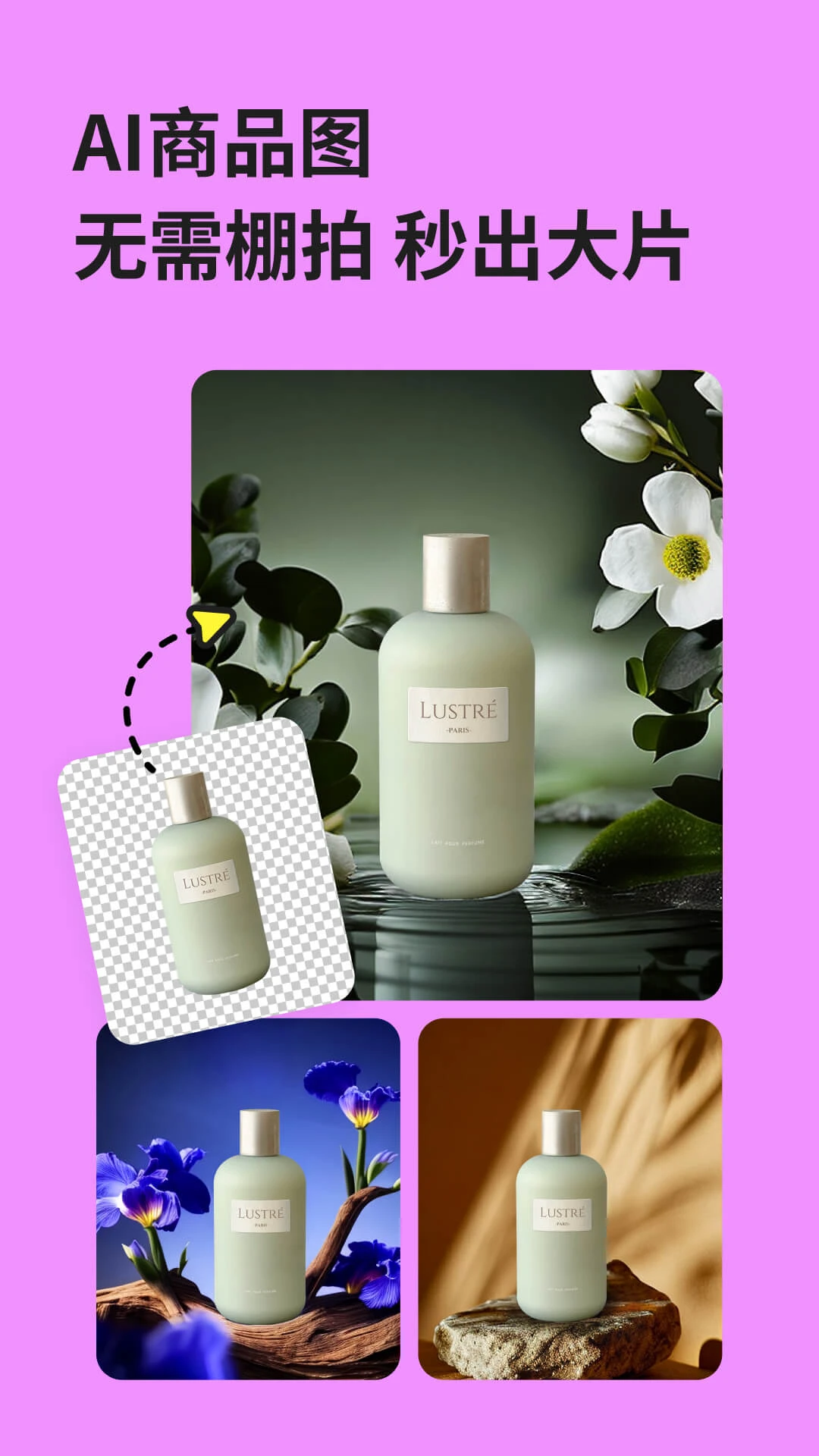 - AI智能设计:提供AI海报、AI商品图等智能设计工具,用户可以通过简单的输入或上传图片,让AI帮助完成复杂的设计工作。