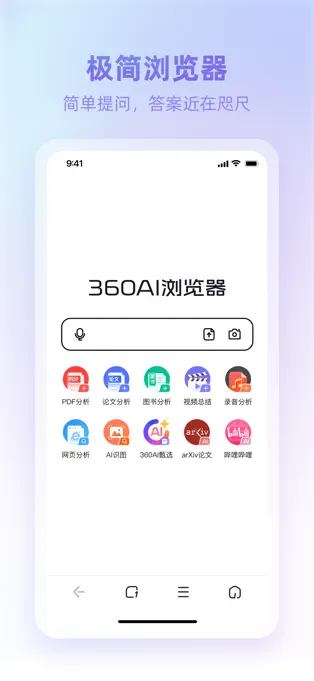 360AI浏览器是智能浏览器,能快速总结PDF、视频、网页内容,帮助用户秒懂万字长文和长视频,消除语言障碍,大幅缩减理解时间。360AI搜索可自动总结全网信息,无需翻找网页;视频总结能快速提炼视频要点,支持提取字幕和定位精彩片段;PDF总结可一键总结外文文献、报告、论文;网页总结能秒懂万字长文并生成思维导图。