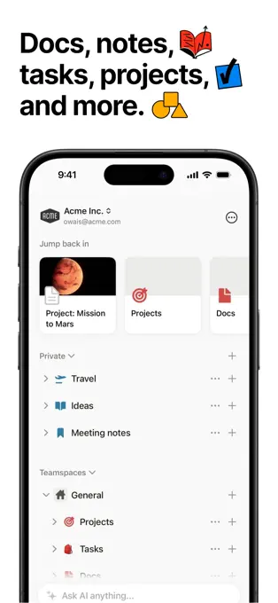 - 笔记和文档管理:用户可以创建任意数量的笔记和文档,涵盖个人笔记、团队文档、知识库等多种类型。